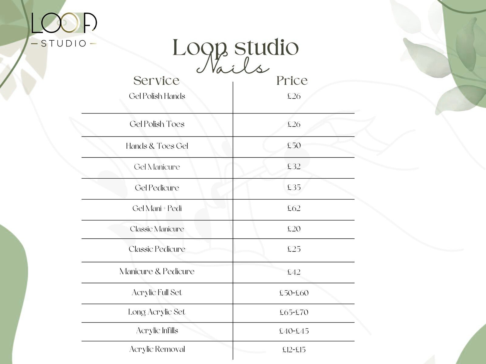 | Hands & Toes Gel | £50 |